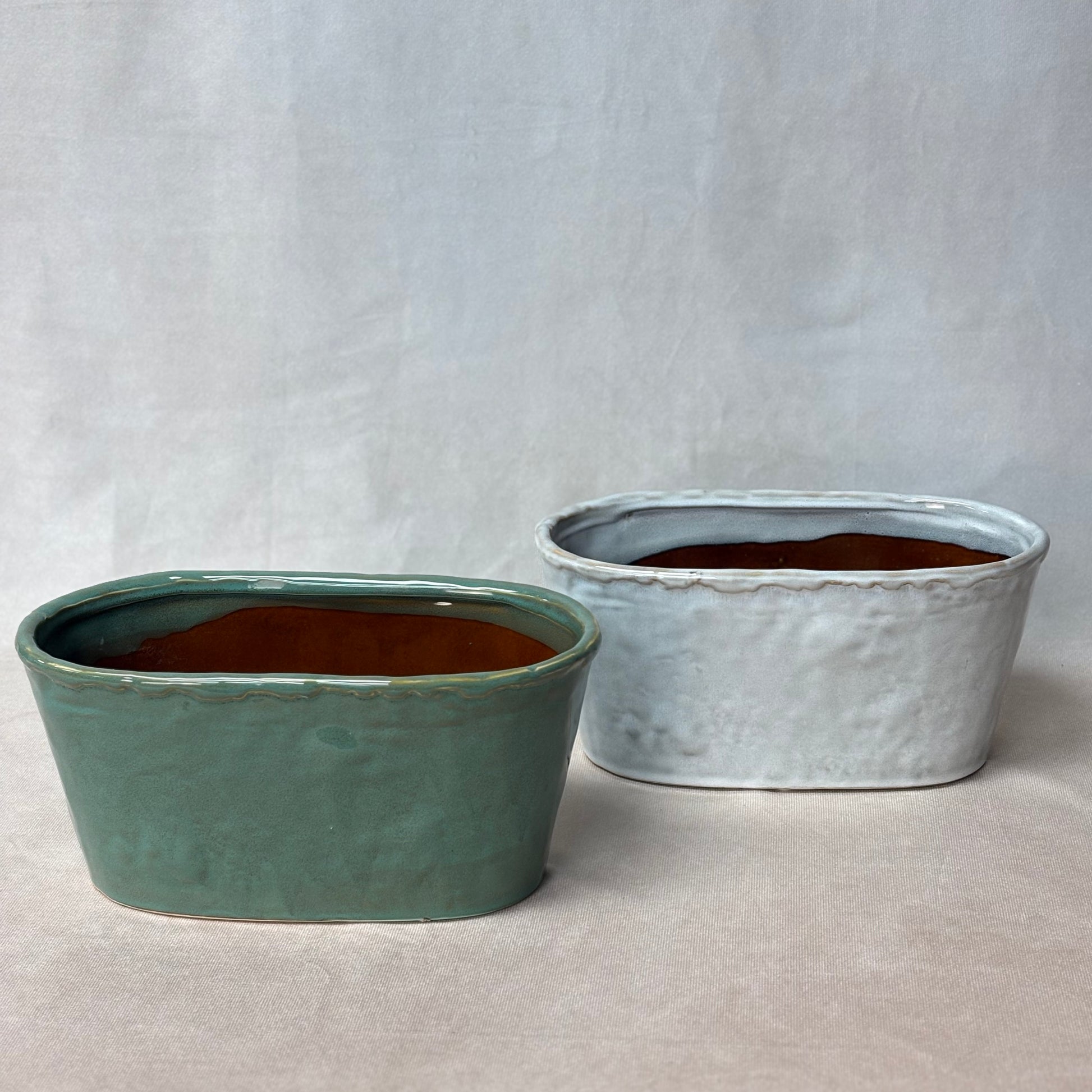An ode to spring, this beautiful arrangement in an ironstone oval container includes delphiniums, ranunculus, anemones, lisianthus, tête-a-tête daffodils and seasonal filler flowers with eucalyptus. Container measures 28cm wide & available in White or Green.